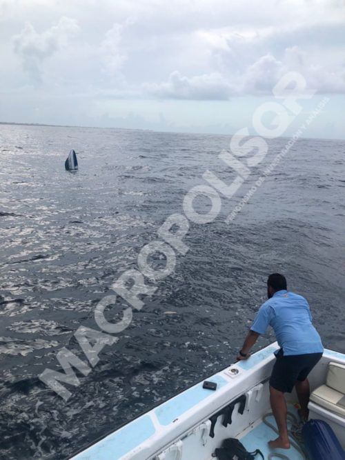 Isla Mujeres,a 13 de julio de 2021.- Una lancha se hundió en el mar en el lado de Punta Sur de la Isla la tarde de este martes, 12 tripulantes quedaron por instantes a la deriva, de manera preliminar se informó que una persona ya no cuenta con signos vitales.