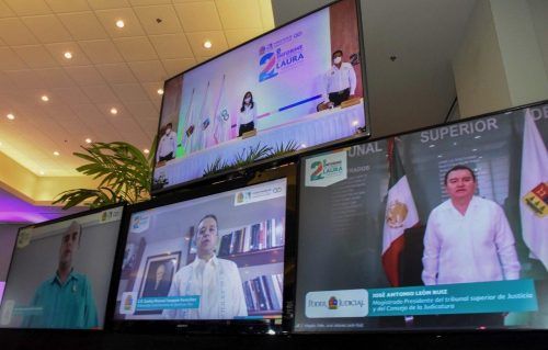 Con la presencia digital del titular del Poder Judicial del Estado, José Antonio León Ruiz, presidente del Tribunal Superior de Justicia del Estado de Quintana Roo, y del diputado Luis Fernando Chávez Zepeda, en representación de la XVI Legislatura del Congreso del Estado, Laura Fernández mencionó que solo juntos y trabajando en equipo se podrá evolucionar con rumbo.