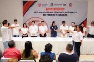 Puerto Morelos, Quintana Roo.- La presidenta municipal Laura Fernández tomó protesta a los integrantes de la directiva de la Red Mundial de Jóvenes Políticos de Puerto Morelos, marco en el que reconoció su entusiasmo y les otorgó su respaldo para llevar con éxito esta encomienda.