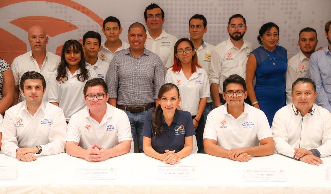 Puerto Morelos, Quintana Roo.- La presidenta municipal Laura Fernández tomó protesta a los integrantes de la directiva de la Red Mundial de Jóvenes Políticos de Puerto Morelos, marco en el que reconoció su entusiasmo y les otorgó su respaldo para llevar con éxito esta encomienda.