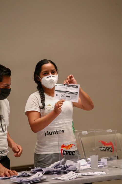 Playa del Carmen, Solidaridad, Q.Roo, 04 de marzo de 2022.- En una jornada democrática, en la que emitieron su voto, libre, personal, directo y secreto, las y los trabajadores del Hotel Secrets Moxche, votaron a favor de la Legitimación de su Contrato Colectivo de Trabajo (CCT).
