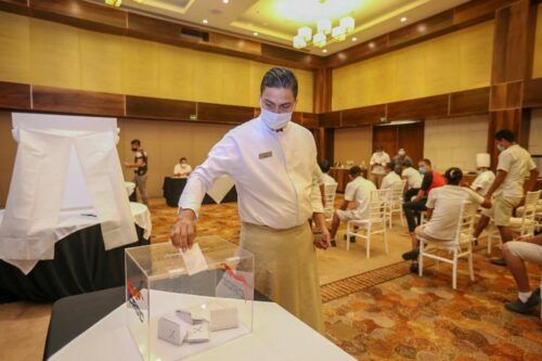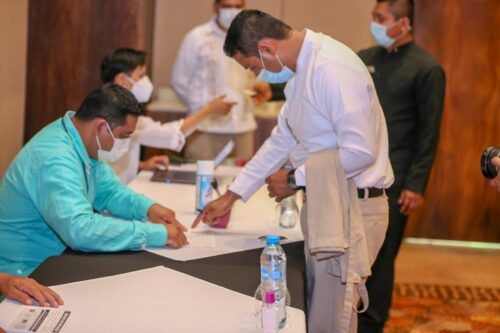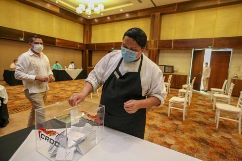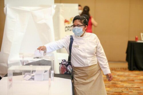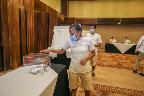 Playa del Carmen, Quintana Roo, 15 de febrero de 2021.- Por unanimidad, las y los trabajadores del Hotel Blue Diamond Riviera Maya votaron a favor de la Legitimación de su Contrato Colectivo de Trabajo (CCT), con la Unión Nacional de Trabajadores de la Industria Alimenticia, Refresquera, Turística, Hotelera, Gastronómica, Similares y Conexos.