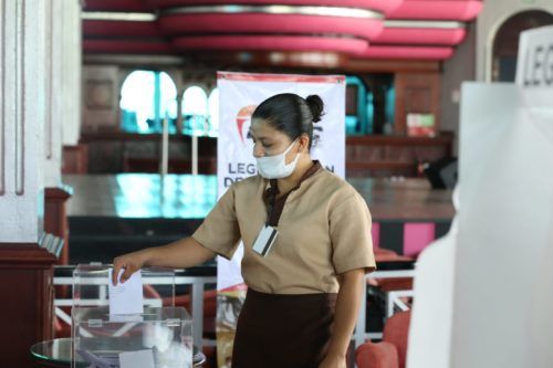 Playa del Carmen, 15 de julio de 2021.- En consulta democrática en la que emitieron su voto libre, personal, directo y secreto, las y los trabajadores del Hotel RIU Palace México votaron para decidir por la legitimación de su Contrato Colectivo de Trabajo (CCT).