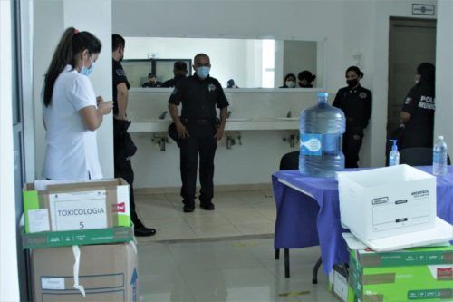 Playa del Carmen, a 5 de octubre de 2021.- Con el objetivo de recuperar la confianza ciudadana a través de una policía íntegra y responsable, se realizaron pruebas de antidoping a más de 700 elementos de la Secretaría de Seguridad Pública y Tránsito Municipal de Solidaridad en coordinación con el Centro de Evaluación y Control de Confianza C3.