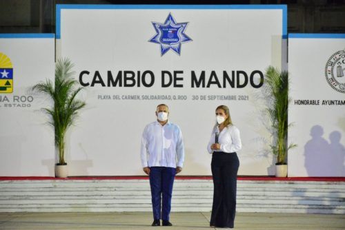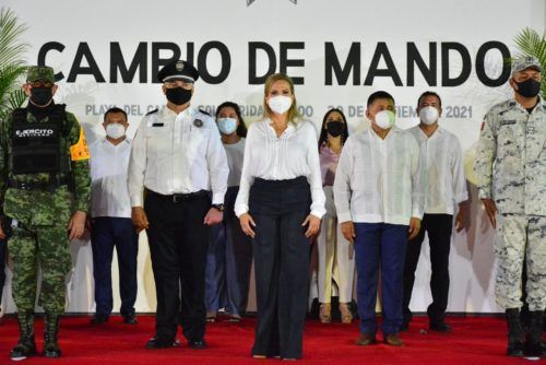 Playa del Carmen, Quintana Roo, 30 de septiembre de 2021.- “La seguridad no es negociable en este gobierno, Solidaridad tendrá una policía mejor capacitada, con equipamiento adecuado y tecnología de última generación”, aseguró la presidenta municipal, Lili Campos, al encabezar el cambio de mando policial, donde presentó a Raúl Alberto Tassinari González, al frente de la Secretaría de Seguridad Pública y Tránsito Municipal, a quien reconoció sus capacidades e instruyó a trabajar de forma coordinada para recuperar la tranquilidad que reclaman las familias Solidarenses.
