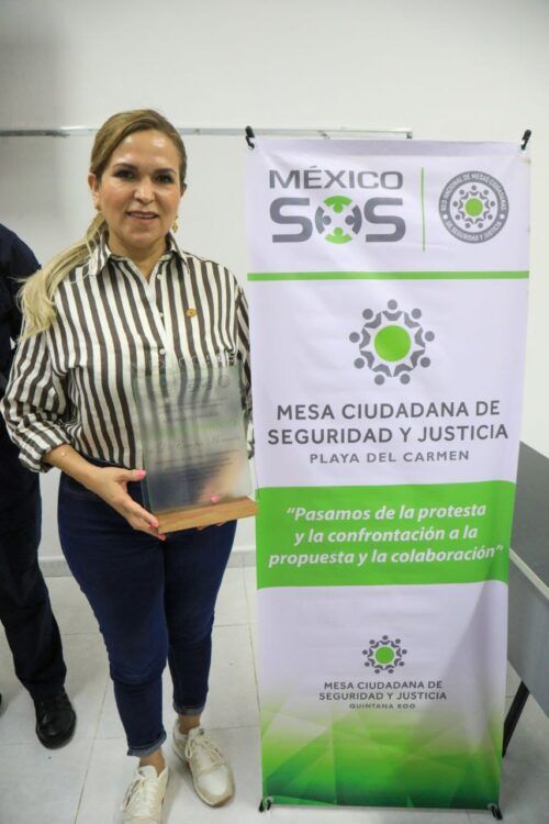 Playa del Carmen. – La presidenta de Solidaridad, Lili Campos, recibió un reconocimiento por su destacada y continúa labor trabajando por parte de la Mesa Ciudadana de Seguridad y Justicia de Playa del Carmen.