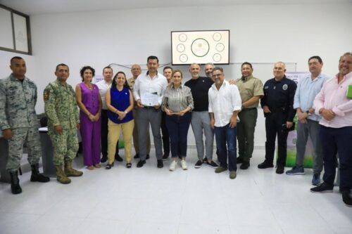 La reunión de la mesa ciudadana de seguridad y justicia se llevó a cabo en un aula de la Universidad Riviera, coordinada por Juan Carlos Hernández, estando presentes los representantes de la Sedena, Marina, la Fiscalía del distrito centro, Secretaría de Seguridad Estatal y Municipal, sector empresarios, entre otros.