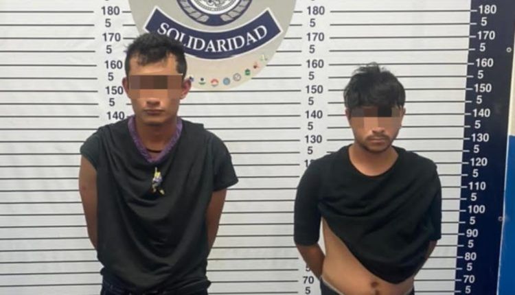 Playa del Carmen.- Policías de la Secretaría de Seguridad Pública y Tránsito Municipal de Solidaridad aseguraron a dos sujetos en posesión de 1 arma de fuego, 11 cartuchos y 34 bolsas con posibles narcóticos.