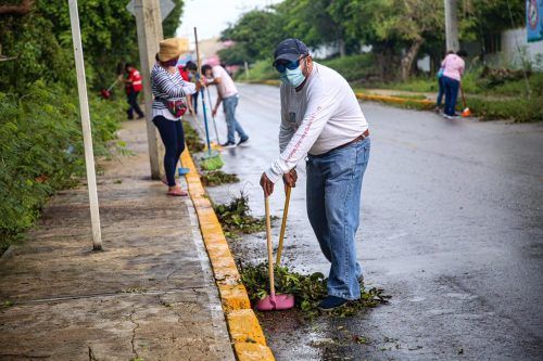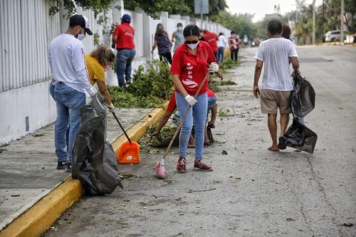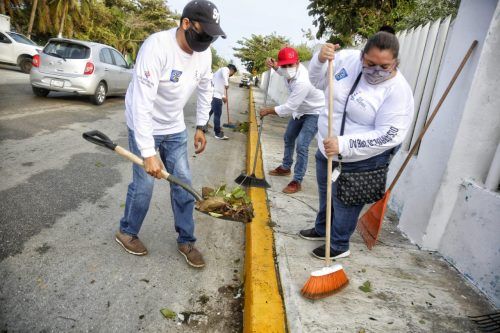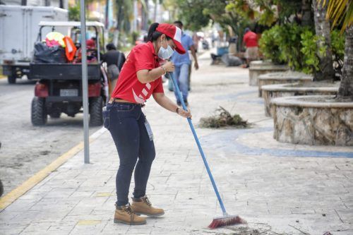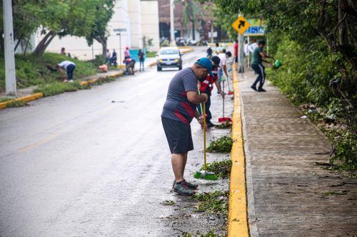 Isla Mujeres, Quintana Roo a 08 de octubre de 2020. – Tras el paso del huracán “Delta” por el municipio de Isla Mujeres, cinco cuadrillas de funcionarios de gobierno y voluntarios pertenecientes al programa “Isla Mujeres Verde y Saludable”, trabajan desde temprana hora de este jueves en tareas de limpieza de calles y avenidas, con el objetivo de continuar con el proceso de recuperación económica.