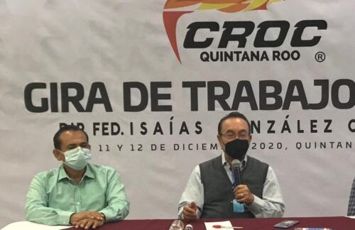 Playa del Carmen, Quintana Roo, 21 de enero de 2021.- Las y los trabajadores agremiados a la Confederación Revolucionaria de Obreros y Campesinos (CROC) en Quintana Roo respaldan y se suman a la petición que el líder nacional, diputado federal, Isaías González Cuevas hizo al presidente de México, Andrés Manuel López Obrado para que permita y facilite que las instituciones hospitalarias privadas, las cadenas farmacéuticas y las organizaciones de trabajadores, poder importar, distribuir libremente la vacuna contra el COVID-19.