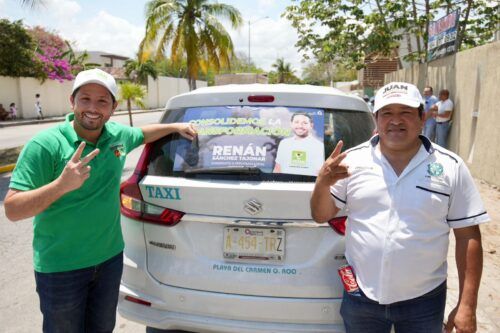 Playa del Carmen.- En su gira por el municipio de Solidaridad, Renán Sánchez Tajonar, candidato a diputado por el Distrito 11 de la coalición “Sigamos Haciendo Historia en Quintana Roo”, platicó con familias y taxistas sobre las propuestas para transformar Playa del Carmen, con mejores servicios públicos y seguridad, así como más programas y empleo para personas con discapacidad.