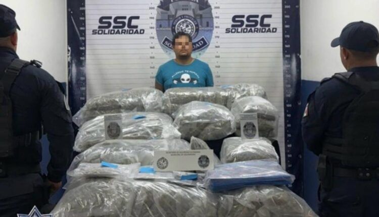 Playa del Carmen.- Policías de Solidaridad detuvieron a una persona del sexo masculino por la probable comisión de delitos contra la salud en el fraccionamiento Real Ibiza, asegurándole un vehículo y 67 paquetes con características propias de narcóticos.