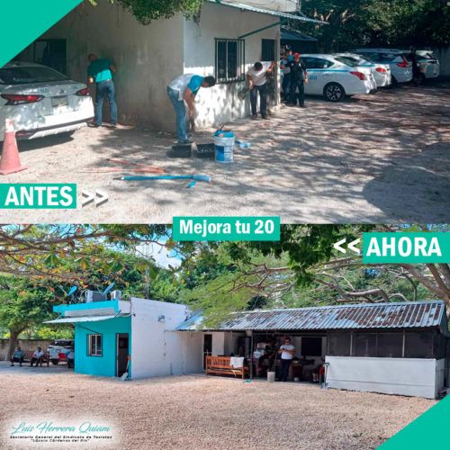 Playa del Carmen.- A través del programa “Mejora tu 20” (unidad), que impulsa el secretario general del Sindicato de Taxistas “Lázaro Cárdenas del Río”, Luis Herrera Quiam, desplegó una cuadrilla se agremiados con el fin de mejorar las instalaciones del sitio que se ubica en las instalaciones del hotel El Dorado, beneficiando directamente a taxistas y usuarios.