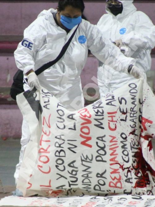 En el lugar del hallazgo los delincuentes colocaron una manta con un mensaje donde amenazan a tiradores de droga de la zona a hotelera, agentes ministeriales entre otros señalamientos