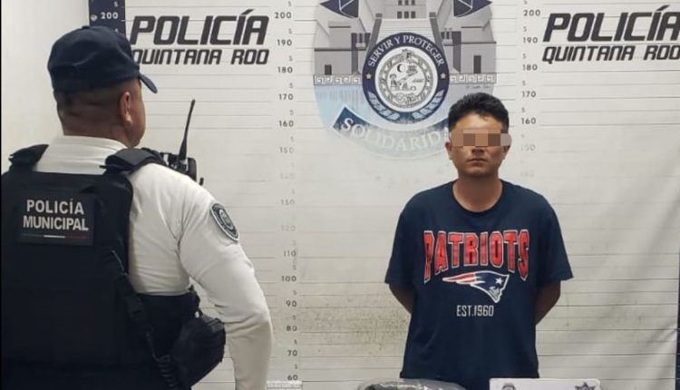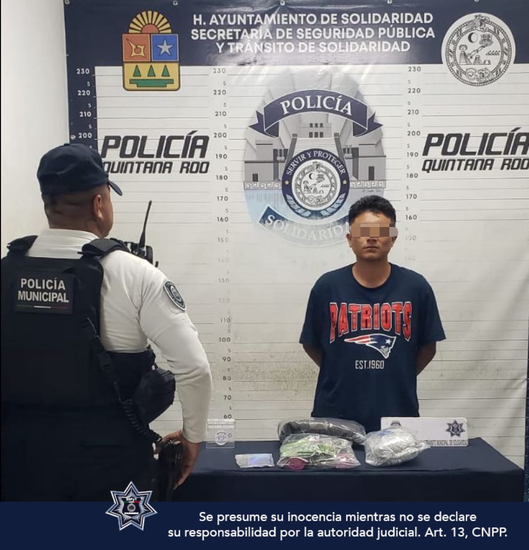 Playa del Carmen.- La Policía Municipal de Solidaridad detuvo a una persona en posesión de 1 envoltorio con posible marihuana y 12 con una sustancia a determinar.