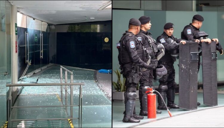 Al menos cinco detonaciones fueron registradas dentro de las instalaciones del Senado. Los manifestantes, desde las calles, lanzaron los petardos, lo que generó humo en la sede legislativa. Algunas de las detonaciones ocurrieron en el Patio del Federalismo, donde se encontraba personal de prensa asignado a la Cámara de Senadores. Los cohetones rompieron varios cristales en la zona, afectando un área en la que se encontraban equipos de seguridad y periodistas cubriendo la sesión.