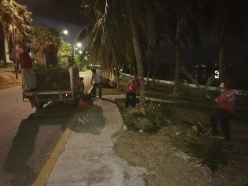 Isla Mujeres, Quintana Roo a 16 de febrero de 2021. – Como parte del compromiso de la actual administración que encabeza Juan Carrillo Soberanis, por preservar un municipio verde, saludable y amigable con el medio ambiente, la dirección de Parques, Jardines y Bacheo lleva a cabo trabajos de poda de árboles, arbustos, pasto, retiro de basura vegetal, en parques, andadores y camellones centrales de Isla Mujeres.