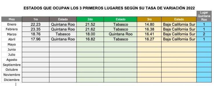 Con datos publicados por el IMSS, de enero de 2021 a abril de 2022, Quintana Roo generó 88,146 nuevos empleos, lo que representa una recuperación del 90.52% de los 97,381 empleos perdidos en el 2020.