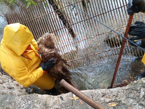 Igualmente, las brigadas trabajan en la limpieza de coladeras y desagües en todo el municipio para prevenir posibles encharcamientos y accidentes viales, en ese sentido, se le solicita a la población que contribuya en las tareas de prevención, no dejando basura en las calles, manteniendo limpio el frente de sus casas, para evitar que se tapen las coladeras con basura y cuando llueva tengan problemas con la acumulación de agua.