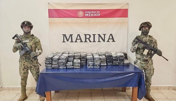 Personal naval procedió a efectuar inspección, encontrando cinco costales con 156 paquetes tipo ladrillo de cocaína, con un peso aproximado de 159 kilogramos.