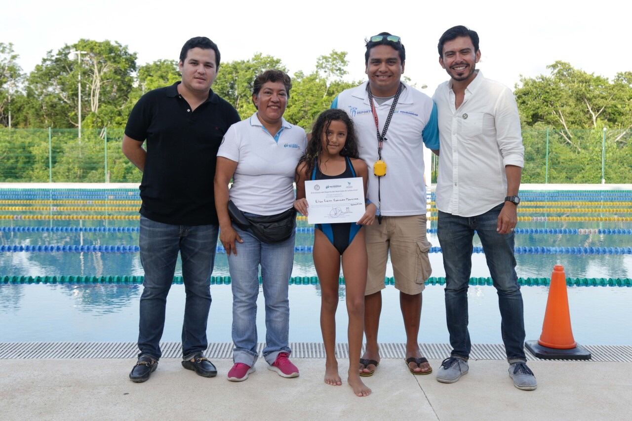 “Hemos logrado incrementar el interés de niños y jóvenes en la práctica de natación como deporte base de sus vidas al acudir a la Unidad Deportiva Riviera Maya, y con ello desarrollar sus habilidades en crol, dorso, mariposa y pecho. Así es como esperamos de ustedes lo mejor para el próximo ciclo”, indicó Castillo Guerrero.
