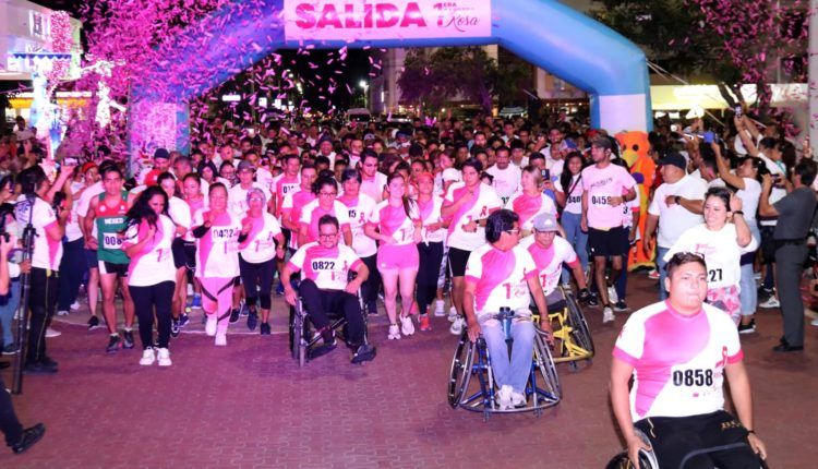 Playa del Carmen.- La presidenta Lili Campos dio el banderazo de salida a más de mil mujeres y hombres quienes participaron en la 1ra Carrera Rosa, organizada por el DIF – Solidaridad, cuyo objetivo es concientizar, prevenir y atender oportunamente el cáncer de mama.