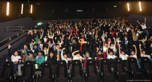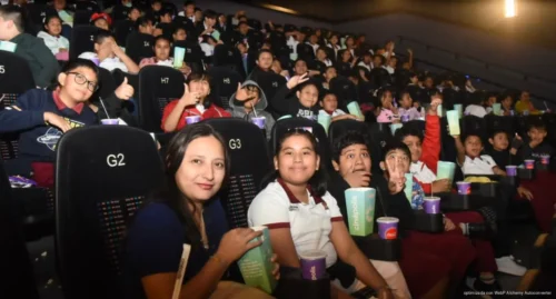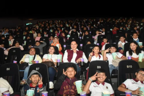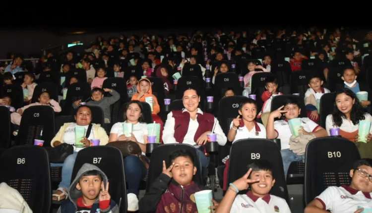 La actividad se realizó en las salas de Cinépolis, donde las niñas y los niños disfrutaron de una función como parte de las acciones encaminadas a fortalecer el bienestar integral de la infancia y generar espacios de sana convivencia.
