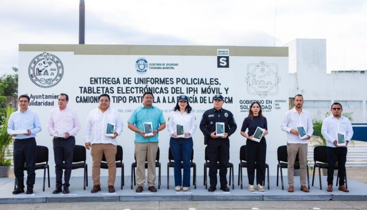 Durante la entrega de uniformes, equipo de protección, tabletas y una patrulla a los elementos de la Secretaría de Seguridad Ciudadana Municipal (SSCM), la Alcaldesa agradeció a la gobernadora Mara Lezama, por este gran apoyo para fortalecer la operatividad y dignificar a cada uno de los que integran la corporación.