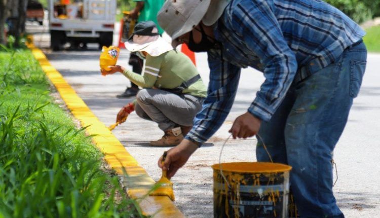 Puerto Morelos, a 22 de junio de 2021.- Con el objetivo de mejorar la imagen urbana en las colonias de la cabecera municipal, el gobierno de Puerto Morelos lleva a cabo el suministro y aplicación de pintura en pavimento y guarniciones, informó el secretario de Obras y Servicios Públicos, Antonio Velázquez Betancourt.
