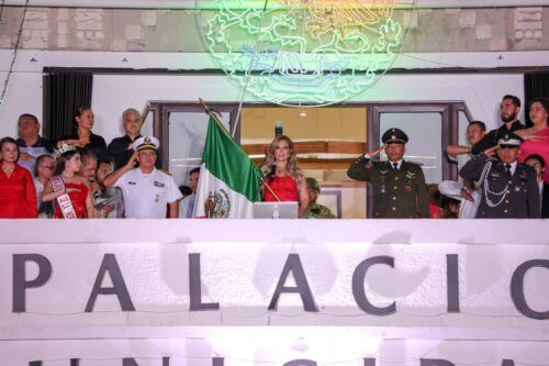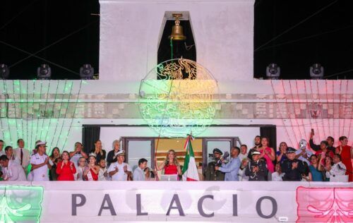 Playa del Carmen. – Con orgullo y patriotismo, ante miles de personas, entre solidarenses y visitantes, la presidenta municipal Lili Campos realizó el tradicional grito de independencia. Recordó a los héroes que nos dieron patria y libertad, ondeó la bandera de México y repicó las campanas desde el balcón del Palacio, frente a la explanada cívica 28 de Julio.