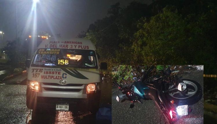 Cancún.- En medio de la fuerte lluvia que se registró ayer por la noche, un motociclista perdió lamentablemente la vida, luego de ser colisionado por una combi.