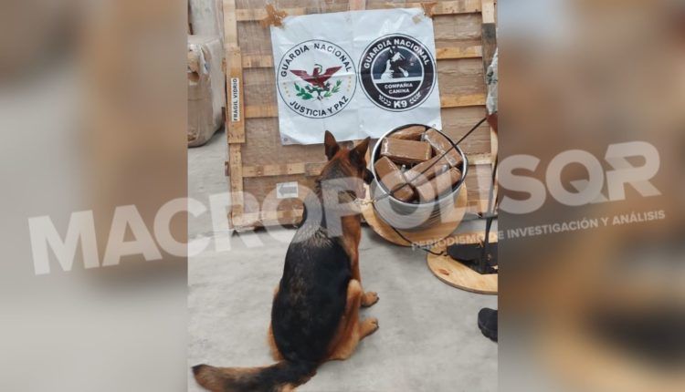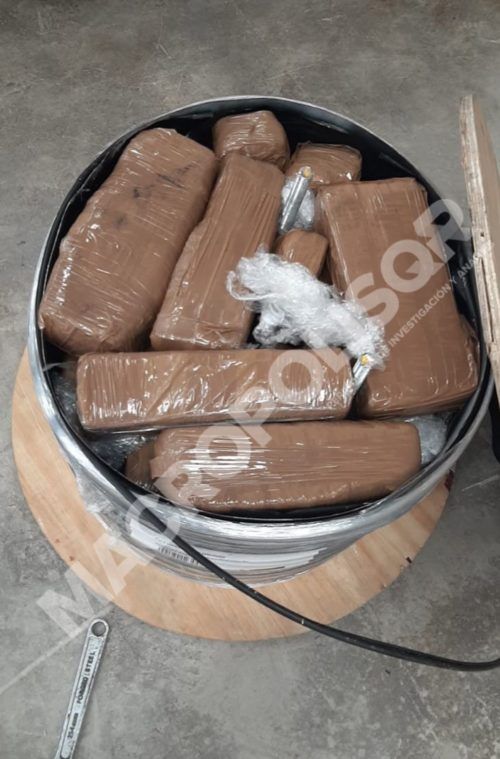Al pasar frente a los paquetes, un binomio canino, especializado en la detección de narcóticos, armas de fuego y papel moneda, se ubicó frente a un rollo de cable ante el cual presentó una alerta, seguida inmediatamente de una indicación alusiva de un posible positivo a los aromas para los que ha sido entrenado para detectar.
