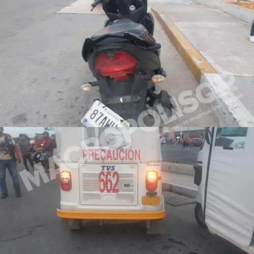 Los hechos ocurrieron cuando en la avenida de Los Gavilanes, frente a la calle Colibrí en la multiplaza Villas del Sol, un mototaxi con número 662 que circulaba en dirección hacia el oriente le realizó un corte de circulación a una motociclista que iba en una Italika 110 con placas 87AWH6, a la cual derribó de la unidad.