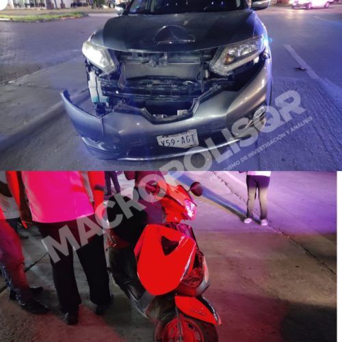 El percance sucedio sobre la avenida Juárez con avenida 45 de la colonia centro cuando una pareja que viajaba abordo de una motocicleta marca Italika color rojo sin placa, no respeto la luz roja del semáforo y se la voló.