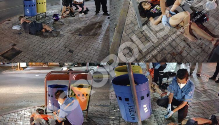 Playa del carmen, a 24 de junio de 2021.- Tendidos sobre el pavimento acabaron dos jóvenes luego de colisionar en la noche con un vehículo particular en las inmediaciones de la colonia centro de playa del Carmen.