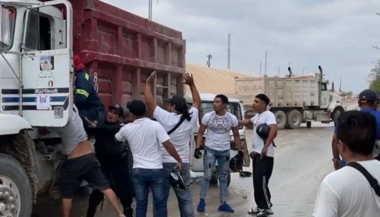 En la conmoción, otro camión de volteo se echó de reversa, sin ver que tenía un mototaxi atrás, por lo que acabó por chocarlo. Esto hizo que los mototaxistas presentes comenzaran a apedrear su vehículo, rompiendo varios cristales, aunque sin lesionar al chofer.