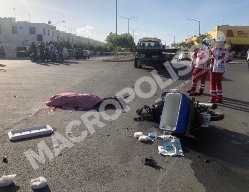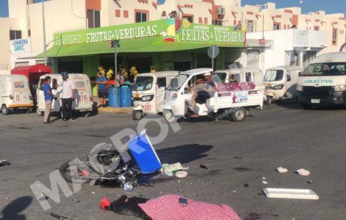 Playa del Carmen, Quintana Roo, 17 de agosto 2021.- Repartidor de tortillas murió trágicamente al chocar brutalmente contra una grúa cuyo operador se pasó su alto obligatorio cuando circulaba sobre la avenida de los Gansos en el fraccionamiento Villas del Sol, al lugar llegó la Policía de Tránsito Municipal para hacerse cargo del hecho.