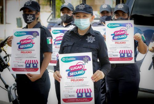 Playa del Carmen, Quintana Roo, 13 de noviembre 2020.-El gobierno de Solidaridad que encabeza Laura Beristain Navarrete, de la mano con empresas locales, continúa con la campaña de protección denominada: “En Solidaridad juntos por tu Seguridad”, que ofrece a las mujeres, niños y personas que estén en riesgo, protección y acceso a llamadas telefónicas en establecimientos privados.