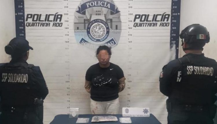 Playa del Carmen.- La Policía Municipal de Solidaridad realizó la detención de una mujer en posesión de un arma de fuego y 40 envoltorios con lo que parece la droga llamada cristal.