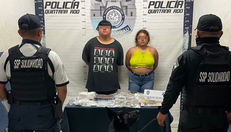En el primer caso, la Policía Turística y la Unidad K9 aseguraron sobre la avenida 25 entre calles 2 y 4 a Aldo “N” de 20 años, oriundo de Tabasco y a Jessica “N” de 22 años, de Quintana Roo, en posesión de 4 envoltorios con posible marihuana, 14 con una sustancia similar a la metanfetamina, 5 con lo que parece piedra, 1 con posible LSD, 1 con una sustancia de las características del hachís, 2 con pastillas y 20 con probable cocaína.