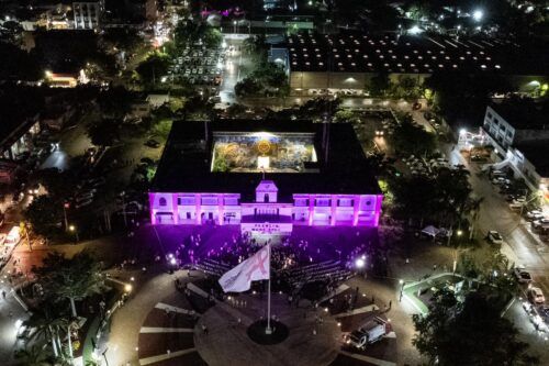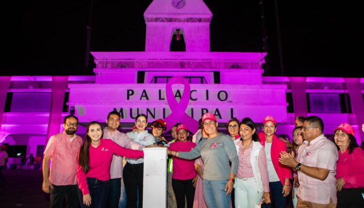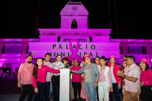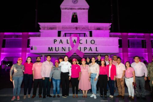 Playa del Carmen. – La presidenta municipal de Solidaridad, Estefanía Mercado, encabezó esta noche el encendido rosa del antiguo Palacio Municipal, con motivo del mes de la concientización sobre el cáncer de mama, marco en el que, con voz firme, resaltó: “¡No estamos solas!”.
