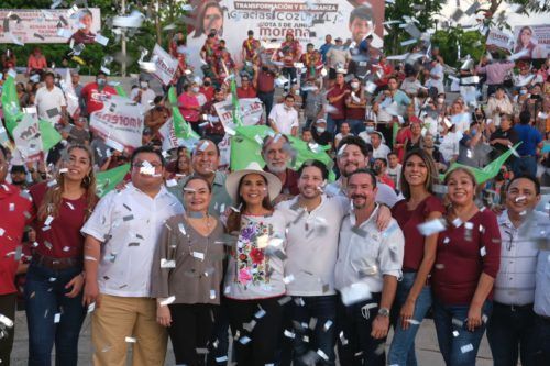 Mara Lezama agradeció a las y los asistentes a la explanada del palacio municipal el mandato que le otorgaron para instaurar en el estado la Cuarta Transformación.