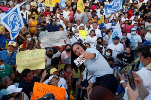 Cancun.- Con el respaldo de más de 3 mil personas, Laura Fernández Piña, candidata a gobernadora por la coalición “Va Por Quintana Roo”, encabezó un mitin en la Plaza de la Reforma, donde afirmó que no la van a callar mientras siga habiendo carencias y violencia que afecten a las mujeres y sus familias.