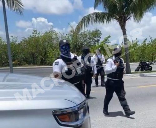 Agentes de la Policía revisaron dos unidades de lujo en el kilómetro 4.5 de la zona hotelera luego de percatarse que minutos antes desde dichas unidades personas habían estando tomando fotografías a los agentes y a elementos taxistas del rumbo por lo que los uniformados procedieron a una revisión.