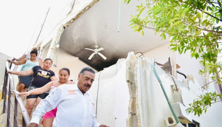 Toledo Sanchez, ante la petición de los vecinos de villas del sol cuarta etapa, los apoyo para apuntalar la vivienda antes que se colapse