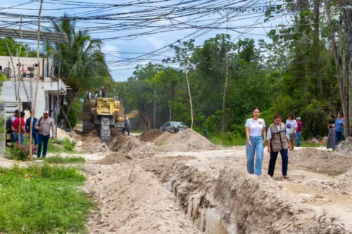 Playa del Carmen, Quintana Roo.— La presidenta municipal Estefanía Mercado supervisó los avances de la obra de construcción de la línea de alimentación de agua potable en la colonia Cristo Rey, proyecto que contempla una inversión de 20.8 millones de pesos y beneficiará de manera directa a aproximadamente 2 mil 400 habitantes.