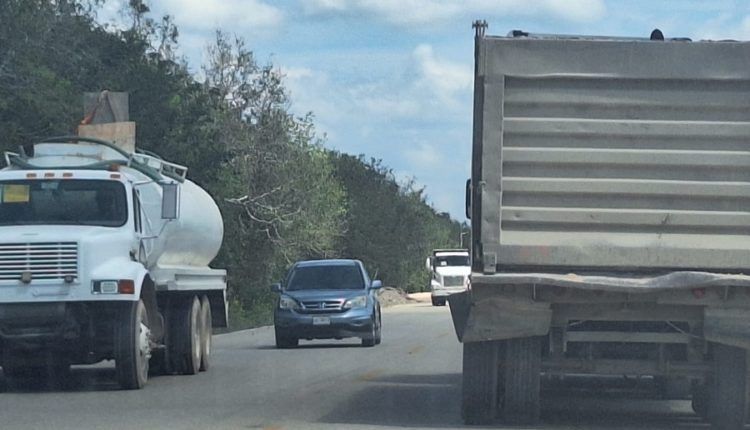 Los trabajos se realizan a marchas forzadas en el tramo 6 del Tren Maya. La única vía que une a Chetumal con el resto del estado está saturado de camiones de volteo, muchos de ellos vetustos, otros casi son chatarra.