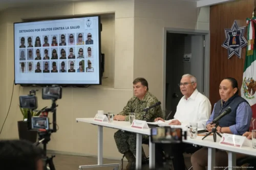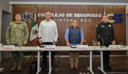 En la conferencia de prensa estuvieron también la Secretaria de Gobierno, Cristina Torres Gómez; contralmirante Julio César Gómez Torres, Secretario de Seguridad Ciudadana y general de brigada diplomado de Estado Mayor Claudio Edmundo Huizar de la Torre, comandante de la Guarnición Militar de Cancún.