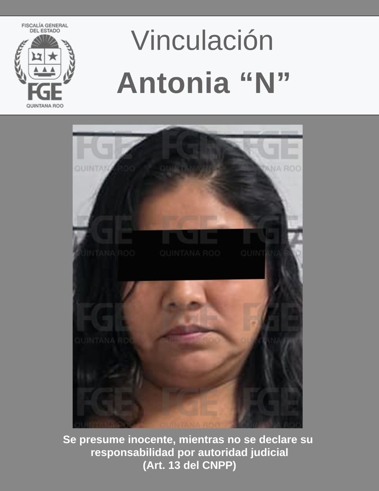 • La Fiscalía General del Estado informa que, Antonia “N” fue detenida durante un operativo en la Supermanzana 89