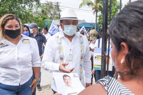 Cancún, Quintana Roo, 20 de abril del 2021.- Con una visión clara de cómo rescate a la delegación de Alfredo V. Bonfil del abandono y la inseguridad, el candidato de la alianza Va por Cancún a la presidencial municipal de Benito Juárez, Chucho Pool recorrió hoy las calles de Alfredo V. Bonfil donde ofreció trabajar constante y permanentemente hasta devolverle la confianza y bienestar a lo bonfileños.